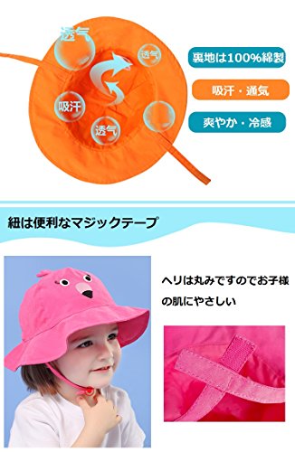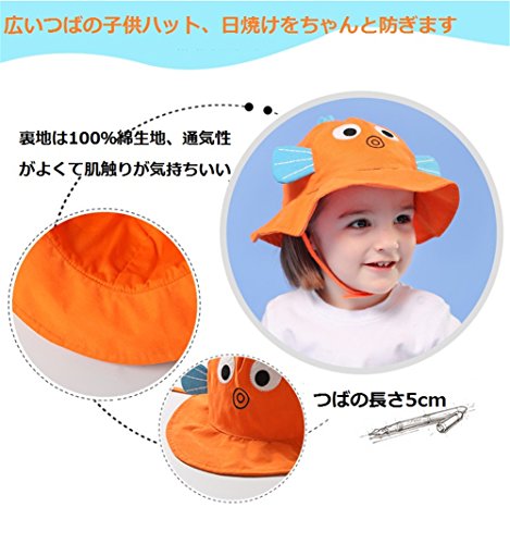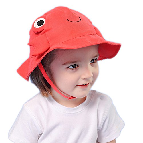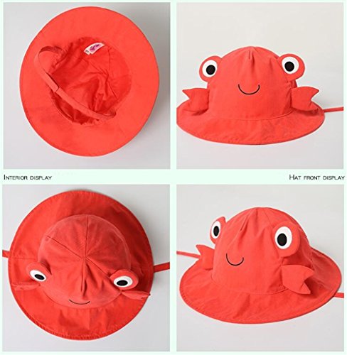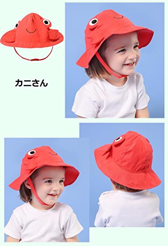 PANCY 【高品質】春夏 帽子 子供 つば広ハット ベビー キャップ 通気 吸汗 かわいい 動物 日焼け対策 UVカット アウトドア 海 0~8歳 (レッド カニ,52cm 2~4歳)
