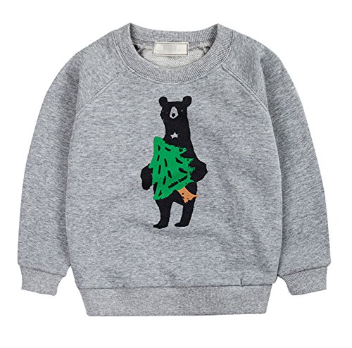 PANCY 子供服 春秋 長袖 Tシャツ トレーナー 丸い襟 キッズ 男の子 女の子 ベビー おしゃれ カジュアル ファッション 可愛い 動物 熊 プリント 3色