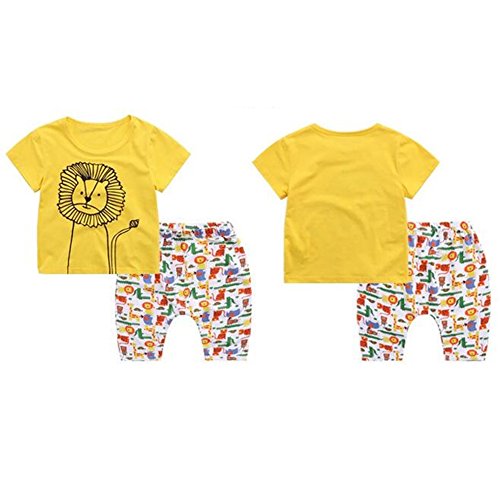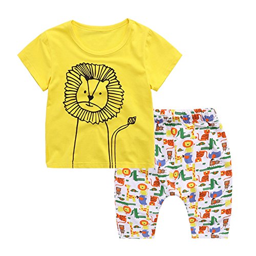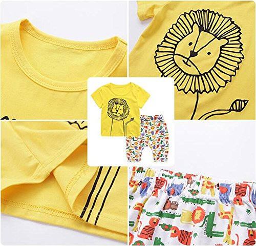 PANCY 子供服 春夏 コットン Tシャツ 短パン 上下セット 男の子 女の子 かわいい 動物プリント 白(ライオン,130cm)