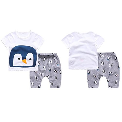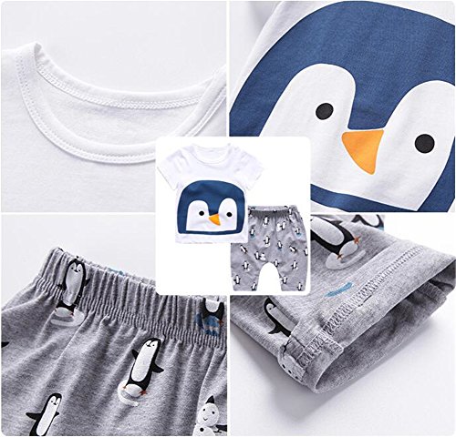 PANCY 子供服 春夏 コットン Tシャツ 短パン 上下セット 男の子 女の子 かわいい 動物プリント 白(ペンギン,90cm)