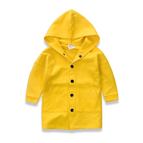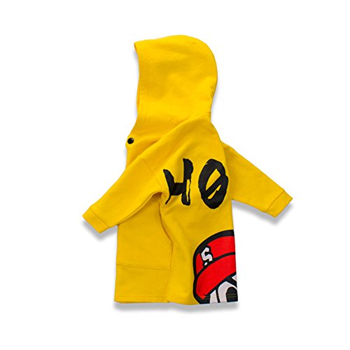PANCY 子供服 春秋 防風コート フード付き パーカー 風抜け ジャケット 男の子 女の子 ロング丈 韓国風 かっこいい プリント(イエロー,100cm)