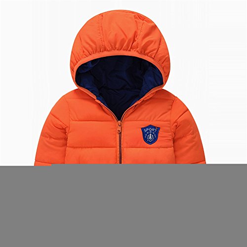 PANCY 子供服 秋冬 長袖 ダウンジャケット キッズ ダウンコート 男の子 女の子 フード付き 防寒コート 厚手 無地(オレンジ,120cm)