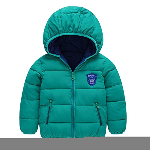 PANCY 子供服 秋冬 長袖 ダウンジャケット キッズ ダウンコート 男の子 女の子 フード付き 防寒コート 厚手 無地(グリーン,120cm)