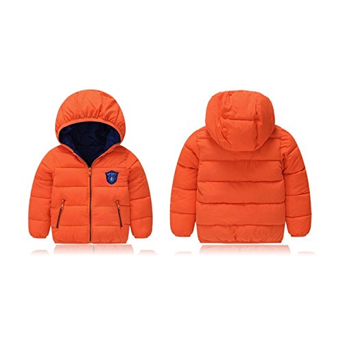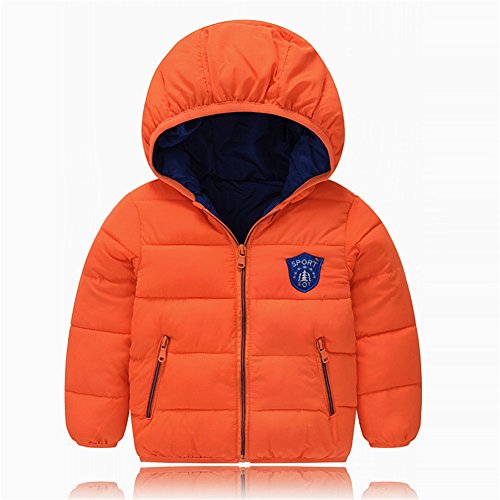 PANCY 子供服 秋冬 長袖 ダウンジャケット キッズ ダウンコート 男の子 女の子 フード付き 防寒コート 厚手 無地(オレンジ,90cm)
