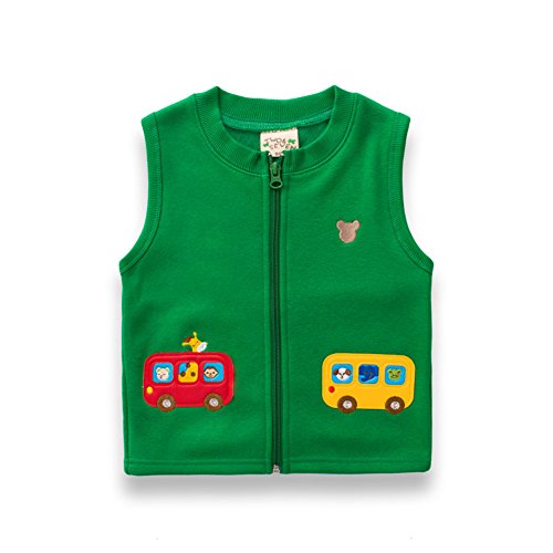 PANCY 子供服 春秋 袖なし ジャケット コットン ベスト 男の子 女の子 ボア 可愛い 動物 アップリケ(グリーン,110cm)