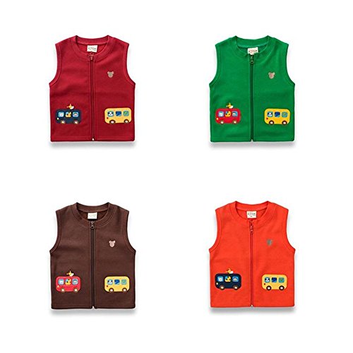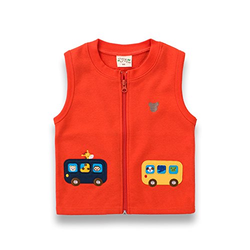 PANCY 子供服 春秋 袖なし ジャケット コットン ベスト 男の子 女の子 ボア 可愛い 動物 アップリケ(オレンジ,110cm)