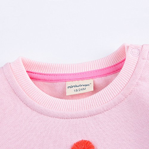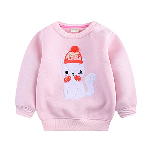 PANCY 子供服 秋冬 長袖 トレーナー 厚手 丸首 肩ボタン 女の子 ベビー服 可愛い 刺繍 リス ピンク 110cm