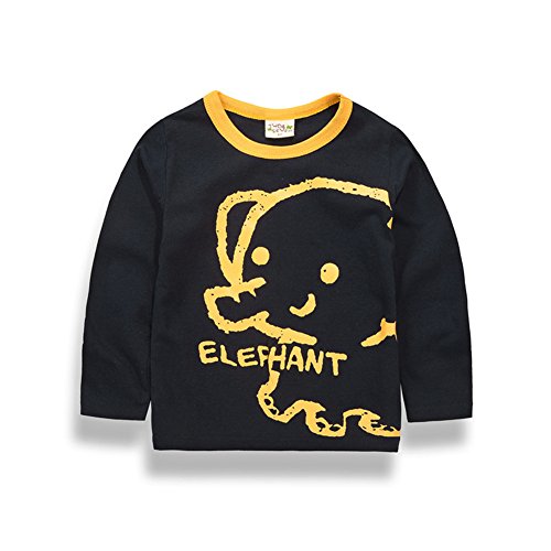 PANCY 子供服 春秋 長袖 Tシャツ キッズ トレーナー 丸い襟 男の子 女の子 可愛い 動物柄 くま キリン ゾウ(ネイビー,130cm)