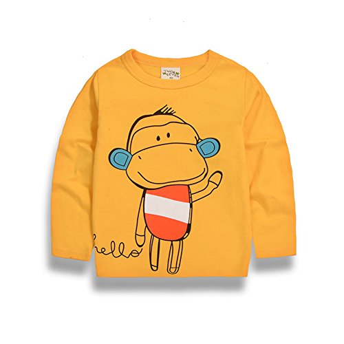 PANCY 子供服 春秋 長袖 Tシャツ トレーナー 丸い襟 男の子 女の子 可愛い 動物柄 さる(90cm,イエロー)