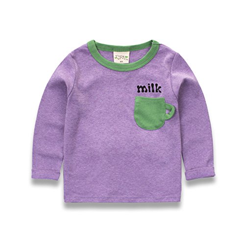 PANCY 子供服 春秋 長袖 Tシャツ キッズ トレーナー 丸い襟 男の子 女の子 可愛い シンプル(パープル,130cm)