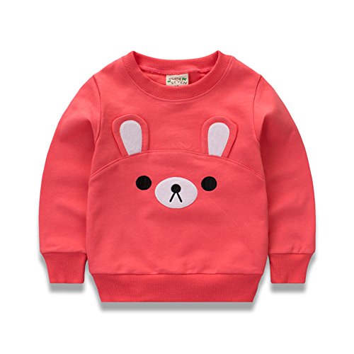 PANCY 子供服 春秋 長袖 Tシャツ キッズ トレーナー 丸い襟 男の子 女の子 可愛い クマ(ピンク,90cm)