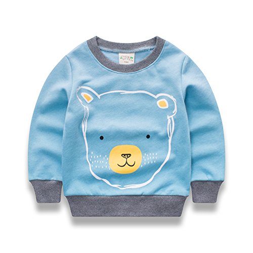 PANCY 子供服 春秋 長袖 Tシャツ キッズ トレーナー 丸い襟 男の子 女の子 可愛い 動物柄(ライトブルー(クマ),100cm)