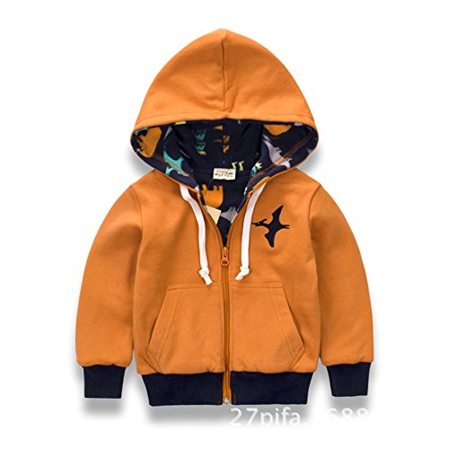 PANCY 子供服 秋冬 防寒コート キッズ スウェットパーカー フード付き トレーナー フーディ 長袖 厚手 男の子 刺繍(オレンジ,90cm)