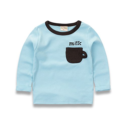 PANCY 子供服 春秋 長袖 Tシャツ キッズ トレーナー 丸い襟 男の子 女の子 可愛い シンプル(ライトブルー,140cm)
