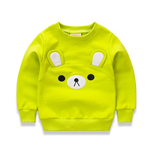 PANCY 子供服 春秋 長袖 Tシャツ キッズ トレーナー 丸い襟 男の子 女の子 可愛い クマ(ライトグリーン,100cm)