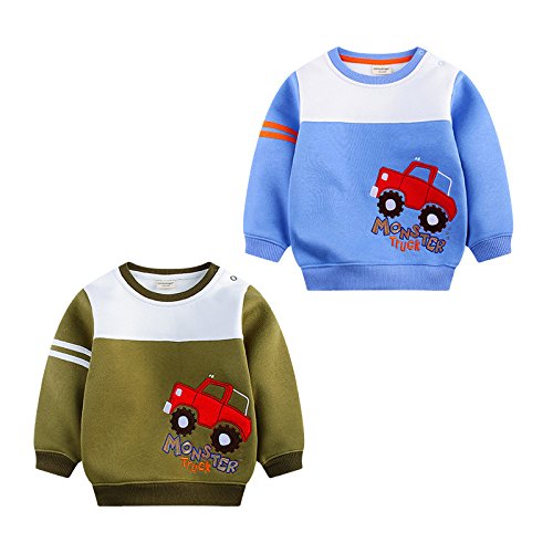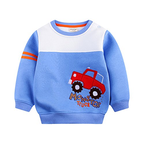 PANCY 子供服 秋冬 長袖 トレーナー 厚手 丸首 肩ボタン 男の子 ベビー服 車柄 刺繍(100cm,ブルー)