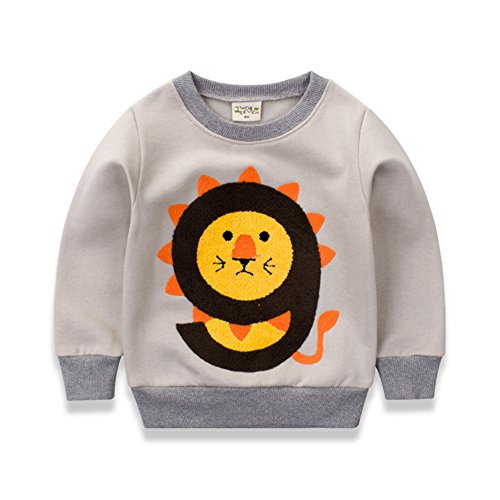PANCY 子供服 春秋 長袖 Tシャツ キッズ トレーナー 丸い襟 男の子 女の子 可愛い ライオン(ベージュ,110cm)