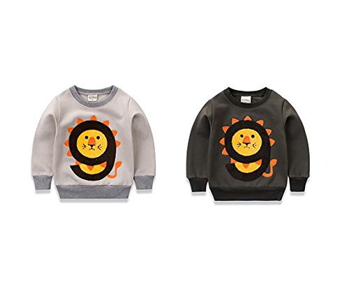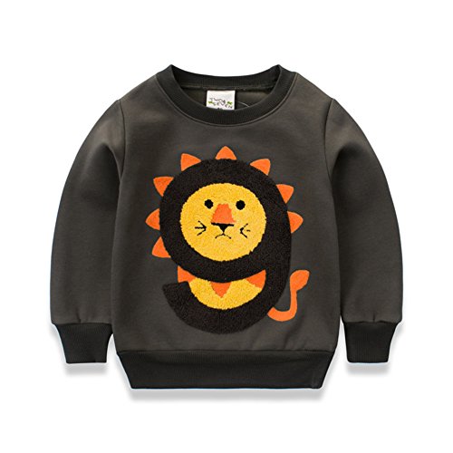 PANCY 子供服 春秋 長袖 Tシャツ キッズ トレーナー 丸い襟 男の子 女の子 可愛い ライオン(カーキ,130cm)