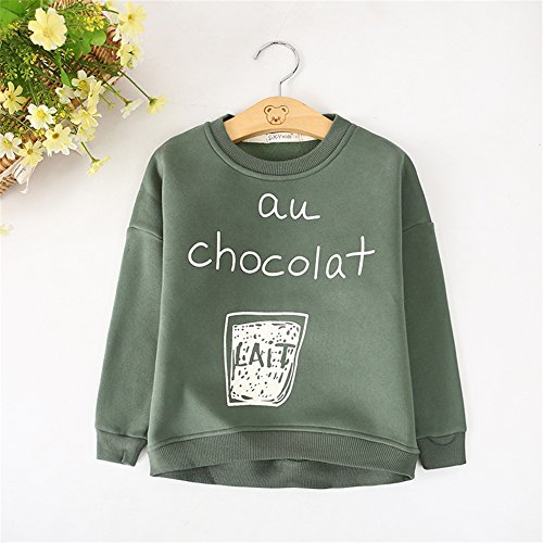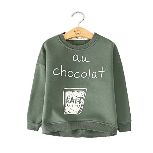 PANCY 子供服 春秋 長袖 Tシャツ キッズ 丸い襟 トレーナー 女の子 男の子 英文字柄 シンプル(グリーン,130cm)