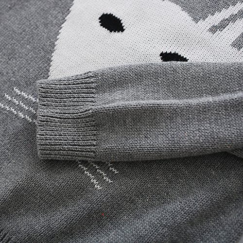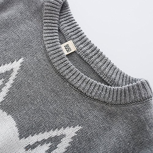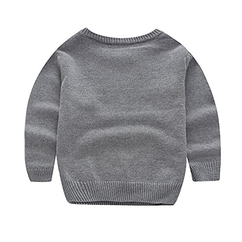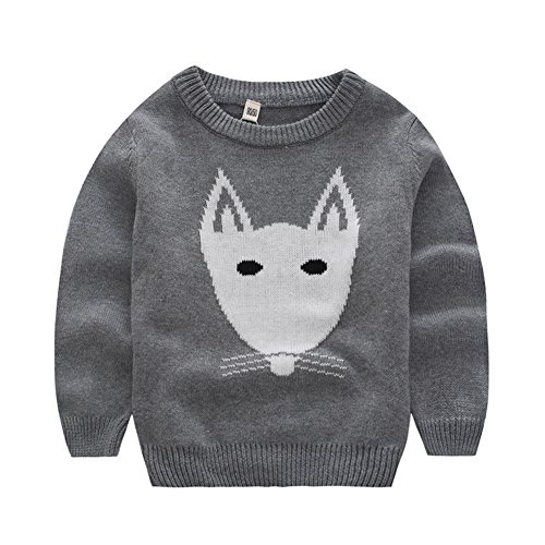 PANCY 子供服 秋冬 長袖 セーター ニット 丸首 男の子 女の子 可愛い きつね(105cm,グレー)