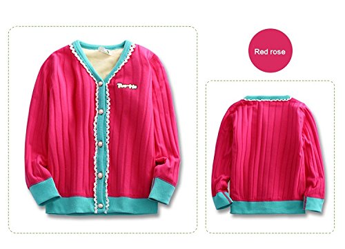 PANCY 子供服 秋冬 防寒綿服 長袖ジャケット 裏起毛カーディガン 男の子 女の子(100cm,ローズ)