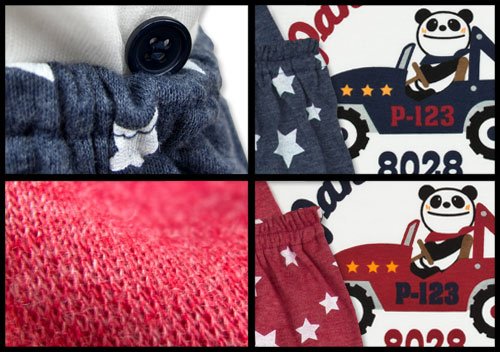 商品説明文: パンダマニアのパンダちゃんプリントがCUTEなT型長そでパジャマです。 保湿性・伸縮性に優れたスムス素材 使用 おなかがでない脇ボタン付き、寝相の悪いベビーちゃんも寝冷えしません。 お胸部分のクルマに乗ったパンダちゃんプリントがカッコイイ 星柄パンツはお胸のパンダちゃんとも相性ピッタリ。 お色はネイビーとレッドの2色展開です。 サイズ: 80cm/90cm/95cm カラー: ネイビー/レッド 素材: 本体 ポリエステル65% 綿35% リブ ポリエステル63% 綿32% ポリウレタン5% 原産国: 中国
