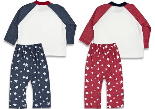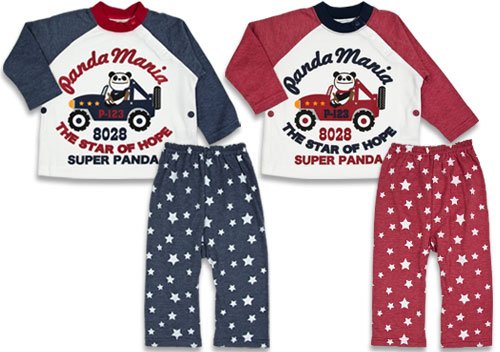 (パンダマニア)PANDA MANIA 2015 パンダちゃんプリント 星柄パンツ T型長そでパジャマ 脇ボタン付き 80cm レッド