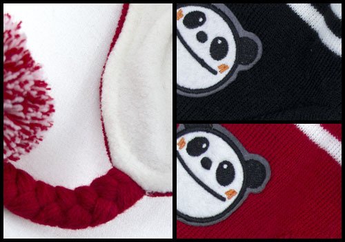 商品説明: パンダマニアのお耳付きポンポンアクリルニット帽です。 本体はアクリル100%、裏地はフリース あたまのてっぺんにはまるでパンダさんのようなポンポンお耳付き みみあて部分にはパンダちゃんアップリケもついています お色はブラック、レッドの2色展開です。 サイズ: ベビーフリー カラー: ブラック/レッド 素材: 本体 アクリル100% 裏地 ポリエステル100% 原産国: 中国