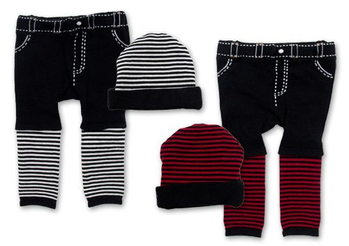 (パンダマニア)PANDA MANIA 【PANDA MANIA】 パンダマニア 丸編み スパッツ ボーダー柄 帽子付き 80cm/90cm/95cm 90 レッド
