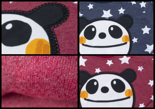 商品説明: パンダマニアのデカパンダちゃんがドドンとCUTEな長そでTシャツです。 保湿性・伸縮性に優れたスムス素材使用。 左肩のスナップで着脱ラクラク 前身ごろ全体にパンダちゃんのドデカアップリケ。 星総柄との相性ばっちりです お色はネイビー、レッドの2色展開です。 サイズ: 80cm/90cm/95cm カラー: ネイビー/レッド 素材: 本体 ポリエステル65% 綿35% リブ部分 ポリエステル63% 綿32% ポリウレタン5% 原産国: 中国