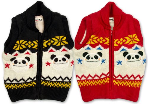 超人気パンダマニアのアクリル100%の糸で編まれたノルディック柄ベストです 表のニット部分はアクリル100% 裏地はポリエステルのタフタだからさらりと着用OK☆ 前身のお胸左右にパンダちゃんフェイスアップリケ付でノルディック柄との相性も抜群だね ☆ 後にもパンダちゃんのにっこりフェイスアップリケがついていてとってもCUTE☆ センターのチャックで着脱もラクラク☆ お色はブラックとレッドの2色展開です サイズ: 80/90/95 カラー: ブラック/レッド 素材: ニット部分・アクリル100% 裏地・ポリエステル100% 原産国: 中国 配送・送料: 商品1点ですとヤマト運輸の紙袋梱包で、送料は別記表のようになります。