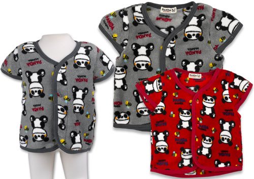(パンダマニア)PANDA MANIA 2015 パンダ総柄 ソフトフリース 袖付き ベスト 80cm レッド