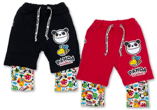 超人気パンダマニアのハーフパンツと長ズボン・レギンスを重ね着しているようなレイヤードパンツです。 毛足が比較的寝ているので裏毛特有の凹凸は控え目で、トレーナーによく使用されるガーゼ裏毛使用 直接お肌に触れる部分は保湿性・伸縮性に優れた綿スムス素材使用 ウエストには飾りの紐付き (ウエスト調節はできません) ハーパン左もも部分はロゴとパンダちゃん&ハチさんプリント☆ 長ズボン部分はとっても可愛いパンダちゃん総柄☆ お色はブラックとレッドの2色展開です サイズ: 80cm/90cm/95cm カラー: ブルー/レッド 素材: 本体・綿100% 原産国: 中国