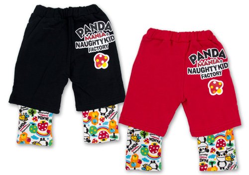 (パンダマニア)PANDA MANIA 【PANDA MANIA】 パンダマニア 重ね着風 総柄裾パンツ 80cm/90cm/95cm 90 レッド