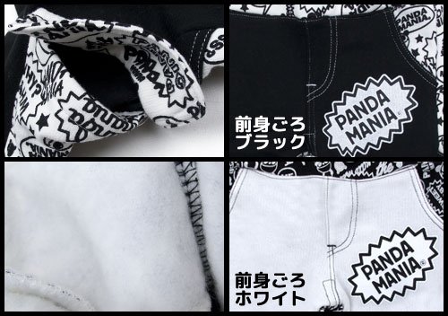 商品説明: パンダマニアのおおきなポケットがトレードマークのモノトーンパンツです。 おお肌に触れる面は起毛 ウエスト両サイドと膝下両サイド、合計4つのポケット付き。 総柄と無地の切り替えモノトーン柄に注目 お色は前身ごろブラックと前身ごろホワイトの2色展開です。 サイズ: 80cm/90cm/95cm カラー: 前身ごろブラック/前身ごろホワイト 素材: 本体 綿100% リブ 綿95% ポリウレタン5% 原産国: 中国