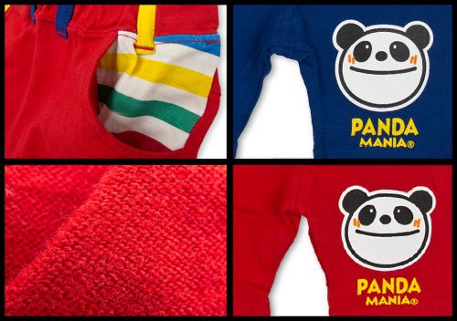 商品説明: パンダマニアの元気いっぱいな ビビッドカラーハーフパンツです。 汗を吸収しやすくニット生地では天竺綿使用。 ウエスト部分の左右ポケットはCUTEなカラフルボーダー 左裾にはニッコリパンダちゃんフェイスプリント入りでとってもカワイイ。 お色はブルーとレッドの2色展開です。 サイズ: 80cm/90cm/95cm/100cm カラー: ブルー/レッド 素材: 綿100% 原産国: 中国