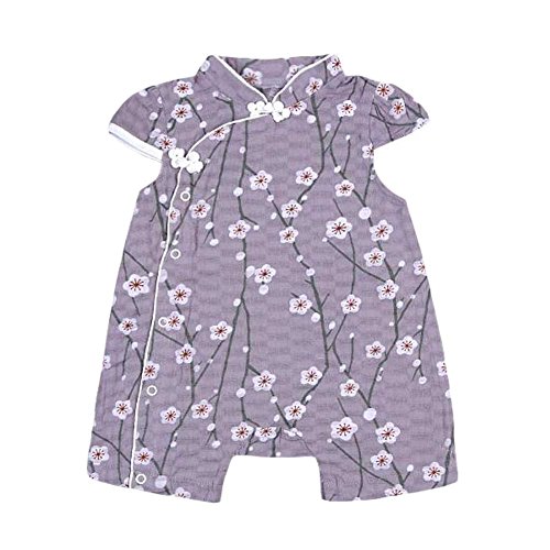 [グレイ]中国のチャイナドレス ベビーボディスーツ夏の半袖コットンベビーロンパー ベビー ロンパース 赤ちゃん ボディ スーツ