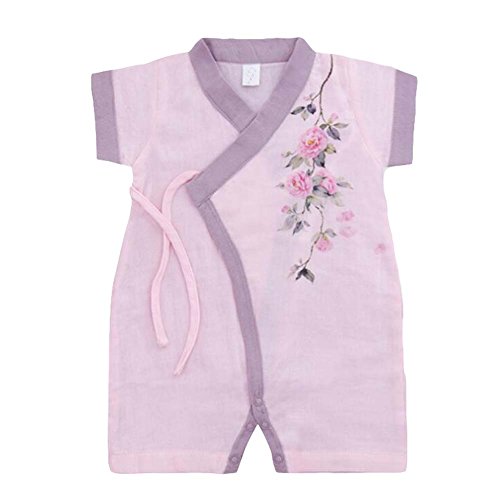 [ピンク]夏のコットンガーゼ赤ちゃんロンパーかわいい中国のチョンサムベビーボディスーツ ベビー ロンパース 赤ちゃん ボディ スーツ
