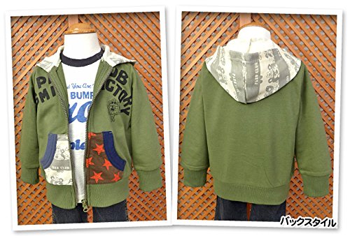 ベビー服 男の子 アウター パーカー ジャケット フルジップ ミニ裏毛 ロゴプリント 配色切替 男児 ベビー (1.カーキ/80cm)
