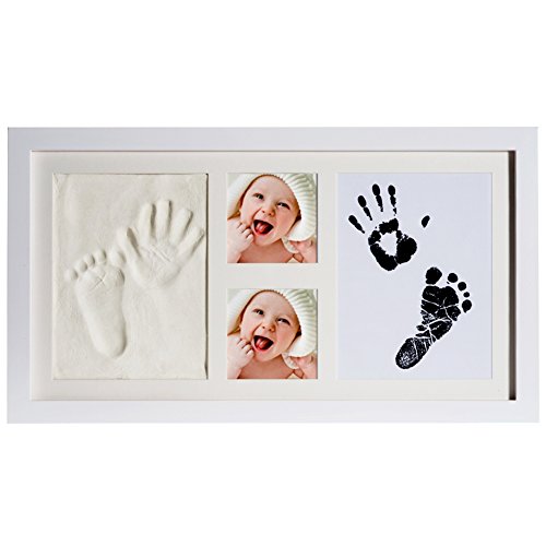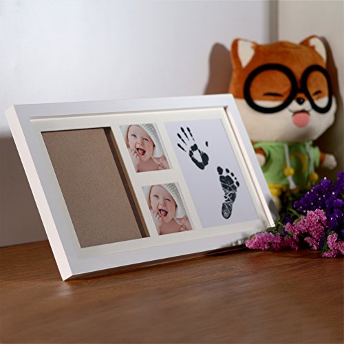 PChero 改良版ベビーフレーム 綺麗なベビーフレーム記念品 赤ちゃん 手形 足形 キット 安全な非毒性粘土とインク 良品質の木製フレーム 卓上用/壁掛両用 男女通用 出産祝いに完璧なベイビーギフト- ホワイト