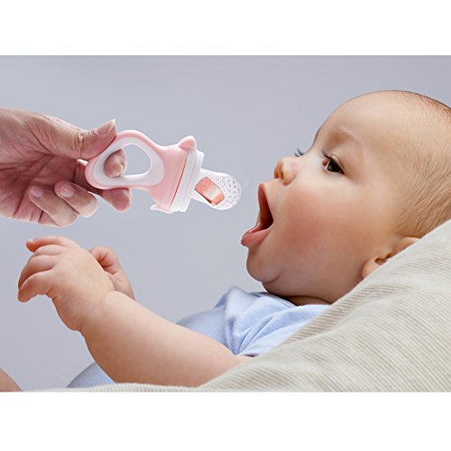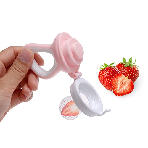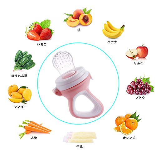 赤ちゃん離乳食フィーダー PChero可愛い子供摂食ツール 野菜 果物 肉など入れでき 全面の栄養を摂取 赤ちゃんの偏食を予防 安全ベビー用品 3種類のサイズ(S.M.L) 咬み袋が付 3か月以上の赤ちゃんに適用 (ピンク)