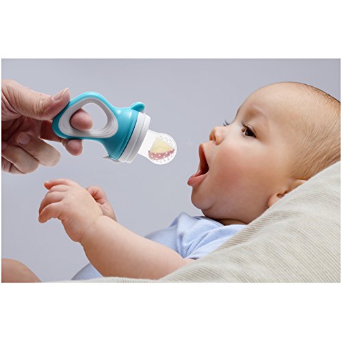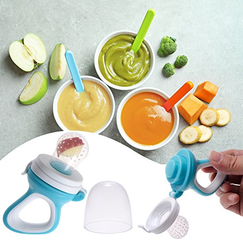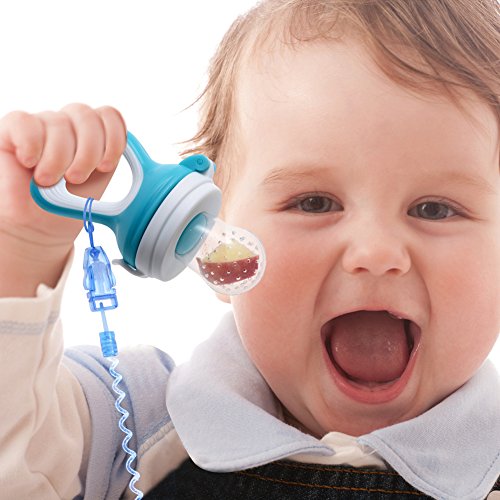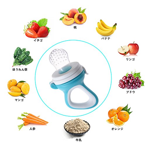 赤ちゃん離乳食フィーダー PChero可愛い子供摂食ツール 野菜 果物 肉など入れでき 全面の栄養を摂取 赤ちゃんの偏食を予防 安全ベビー用品 3種類のサイズ(S.M.L) 咬み袋が付 3か月以上の赤ちゃんに適用 (ブルー)