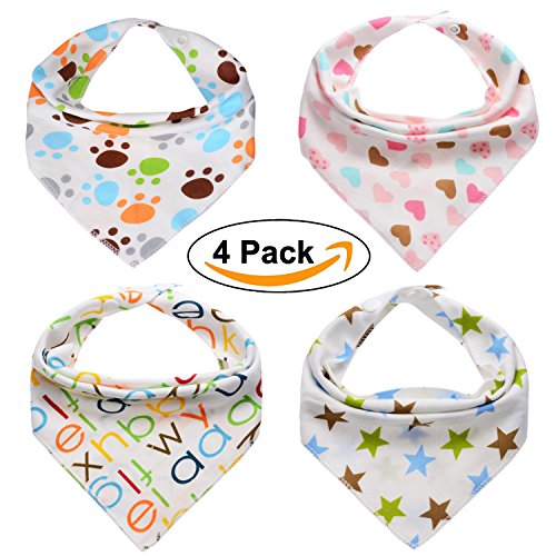 よだれかけ、PChero 4パック可愛いスナップビブ、赤ちゃんのためのコットン制、ベビーバンダナよだれビブ、アンチ香りと抗菌、パーフェクト敏感肌用