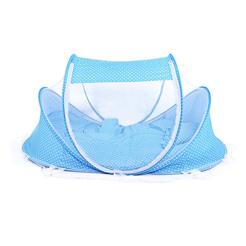 PDR ベビーベッド 幼児ベッド 折りたたみ式 ベッドインベッド ポータブル 蚊帳付き ベビー蚊帳 虫よけ (ブルー)
