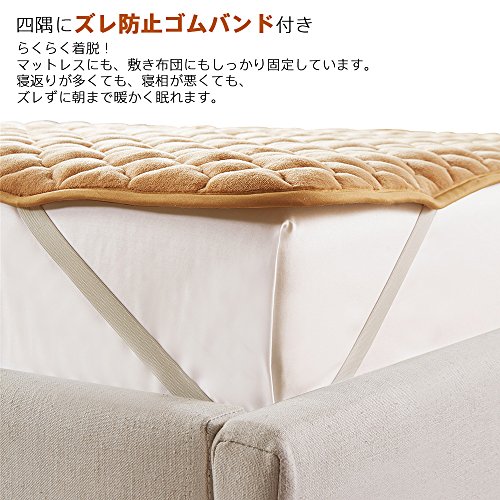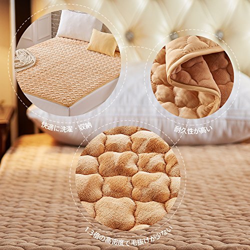 極厚系 フランネル 敷きパッド あったか マイクロファイバー ベッドパッド 洗える 抗菌防臭防ダニ加工 (セミダブル・120X200cm, ベージュ)