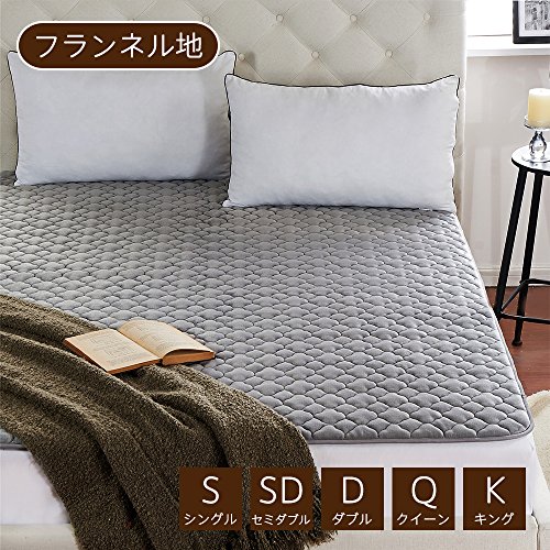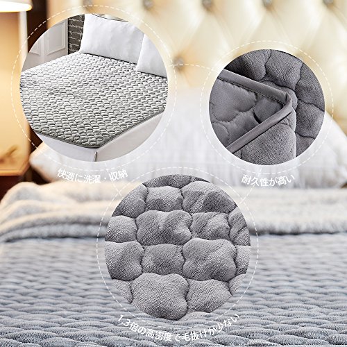 極厚系 フランネル 敷きパッド あったか マイクロファイバー ベッドパッド 洗える 抗菌防臭防ダニ加工 (シングル・100X200cm, グレー)