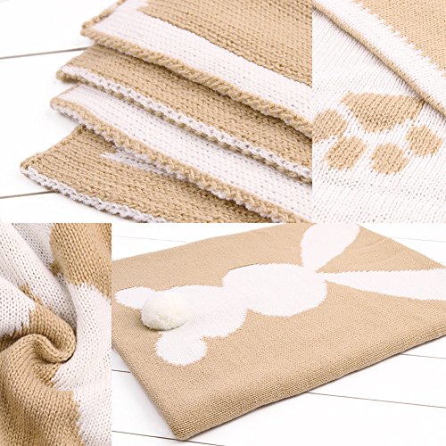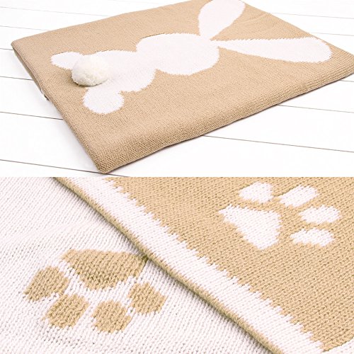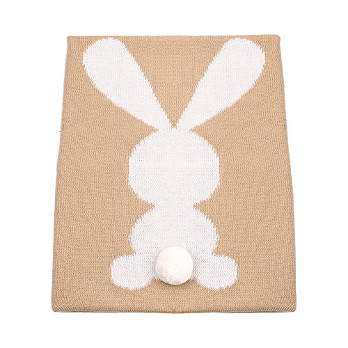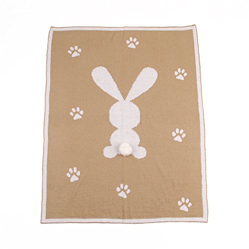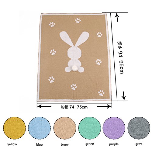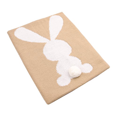 キッズ用 ブランケット ベビー用 編み物 膝掛け 秋冬 ウサギ 可愛い 冷房対策 多機能 昼寝に対応(95*75cm) (ブラウン)