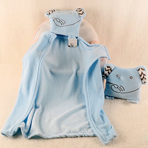 赤ちゃん毛布 ベビー ブランケット 湯上りタオル 枕 多機能 フード付き ふわふわ 可愛い カートン 動物 出産祝い 女の子 男の子 (ブルー)