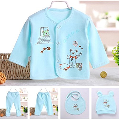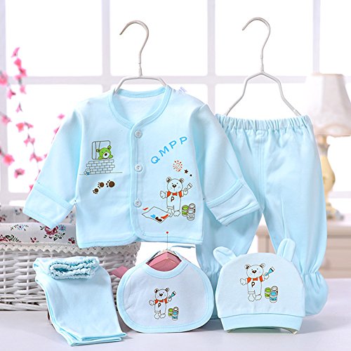 PER 出産祝い 新生児 服 ベビー服 ベビー肌着 下着 5枚組 ギフトセット 可愛い 動物プリント (ブルー)