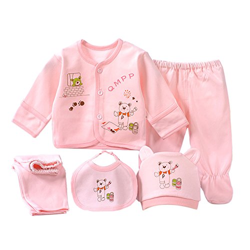 PER 出産祝い 新生児 服 ベビー服 ベビー肌着 下着 5枚組 ギフトセット 可愛い 動物プリント (ピンク)